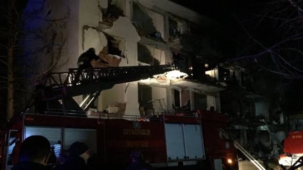 A woman and a baby are reported among the dead. Rescuers are searching through the rubble at the scene in Cinar district, Diyarbakir province.